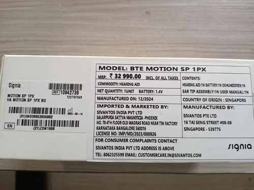 Trusted Brand and Model: Signia SP 1PX BTE Motion known for high-performance digital hearing solutions and user-friendly features.